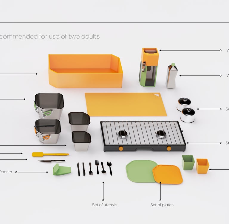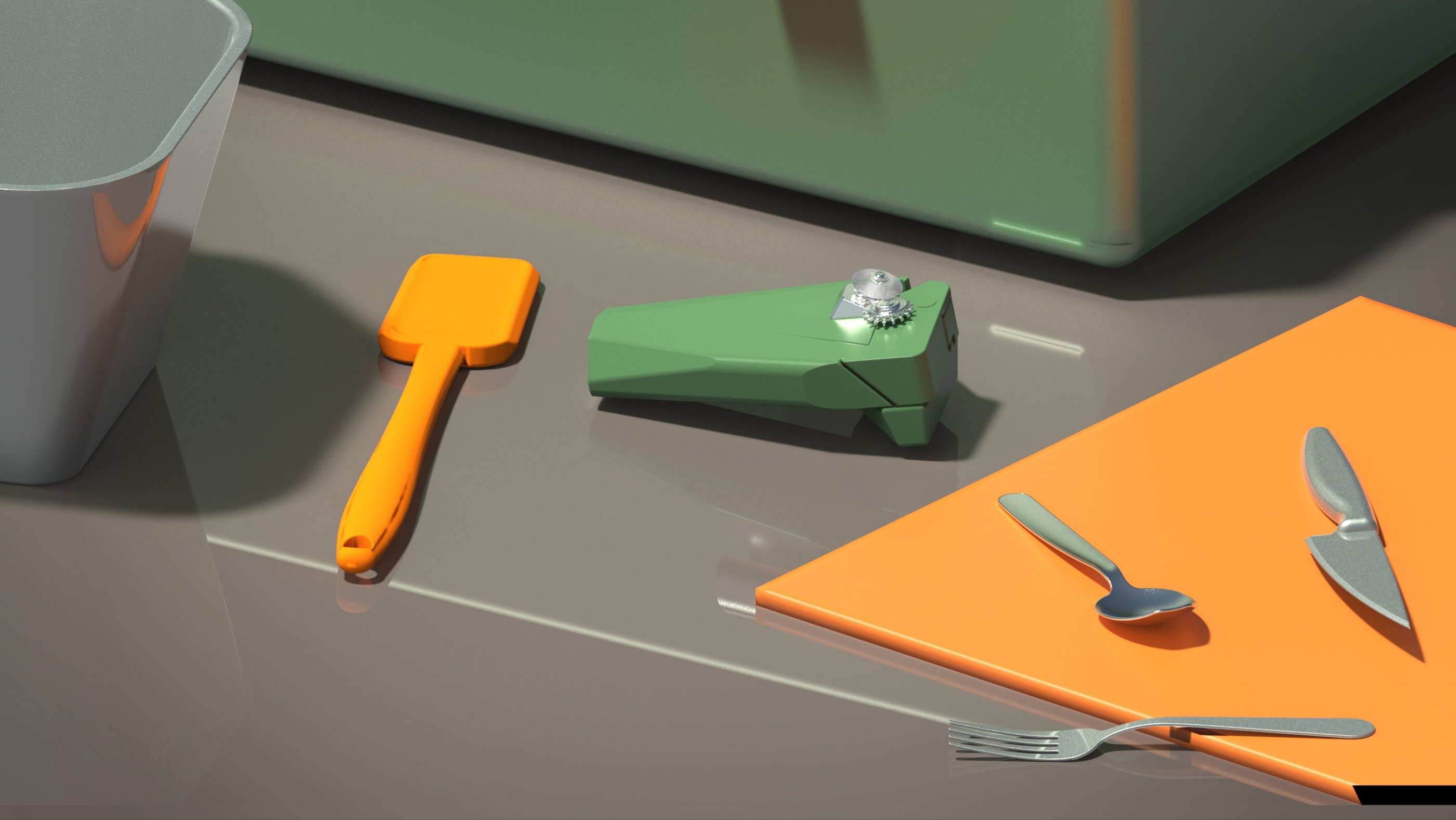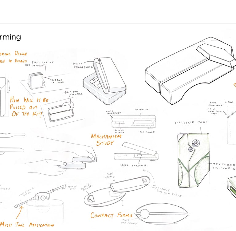 I developed the designs for the utensils and the can opener to fit within the kit- mindful of this size parameters and design language.